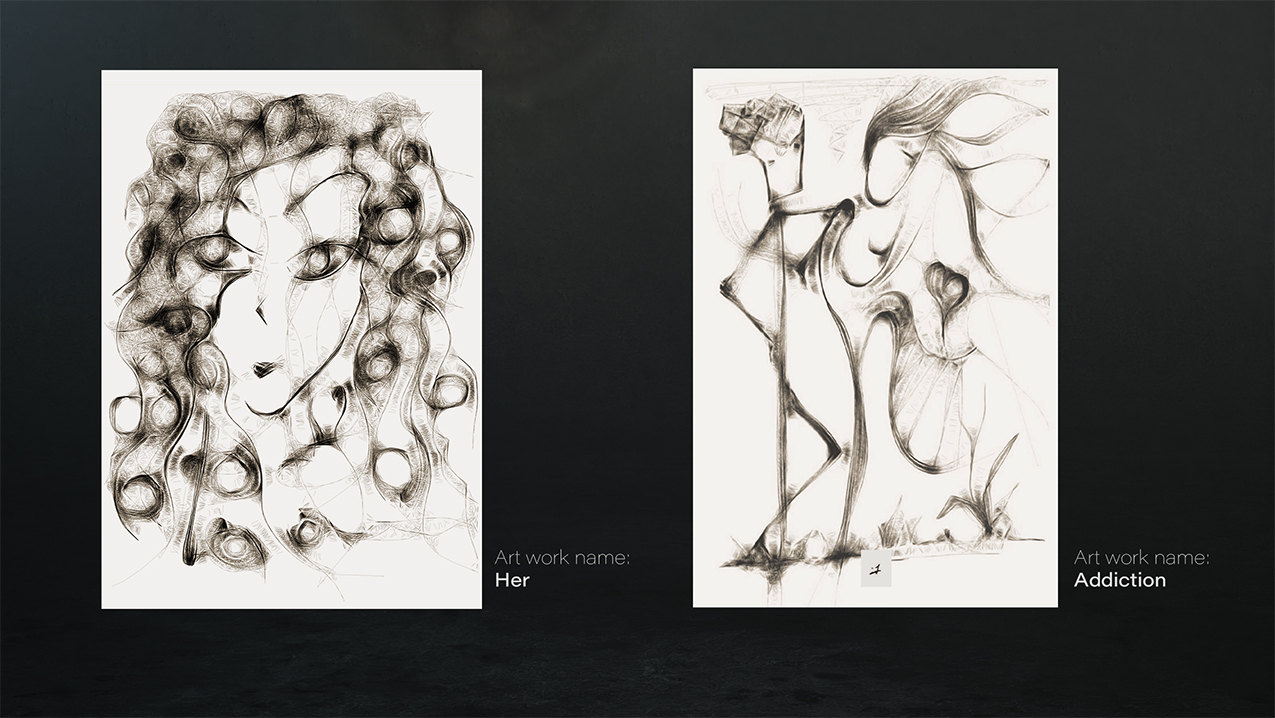 My implicit drawings are like windows into space of my mind, revealing inner thoughts and emotions through abstract expression. They capture the essence of my inner world in visual form, offering glimpses into the depths of my imagination.